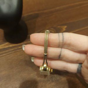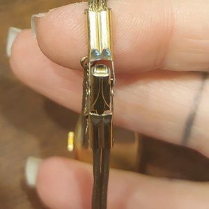 Gold toned laced, flexible watch band with clasp closure and safety chain to prevent loss. Hand Winding Movement, Swiss Made.