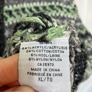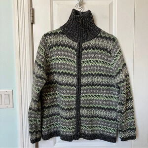 Vintage One on One Green Striped Marled Knit Grandma Full Zip Sweater