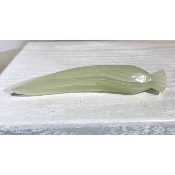 This elegant set of onyx sculptures artfully depicts a banana, mango and an apple on a smooth base. The soft, muted colors and natural stone patterning make each piece unique, adding sophistication to any decor. Ideal as a decorative centerpiece or to enhance any collection of vintage or mineral art pieces.
