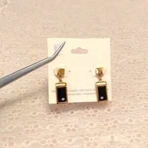 Vintage Onyx Gold Tone Dangle Drop Earrings Timeless VTG Jewelry