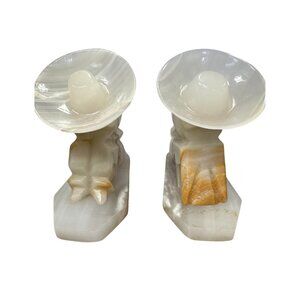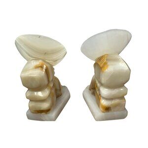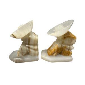 Vintage Onyx Stone Sleeping Mexican Carved Bookends Sombrero Pair