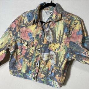 Vintage Opal By Lorraine Wardy All Over Graphic Print Oversized Cropped Denim Jacket M
