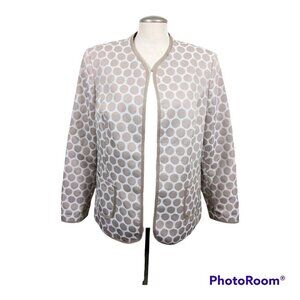 Vintage Open Front Jacket Womens Size 14 Beige Polka Dot Blazer Neutral Textured