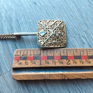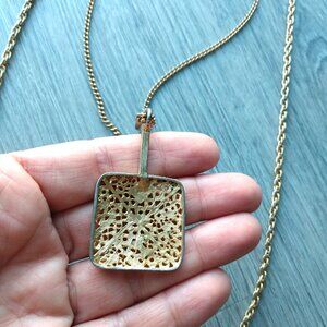 Vintage Openwork Square Pendant Necklace with Double Chain