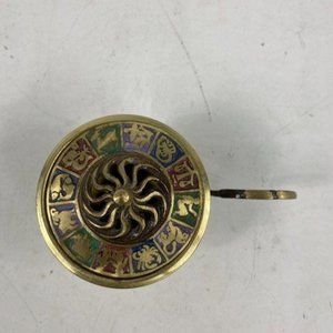Vintage Oppenheim Gold Tone Enamel Brass Scorpio Print Saccharin Dispenser w/Lid
