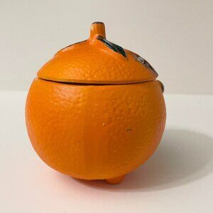 Vintage Orange Anthropomorphic Smiling Fruit Ceramic Sugar Bowl Googly Eyes