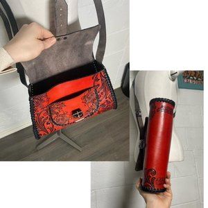 Vintage Orange Hand Tooled Leather Crossbody Bag