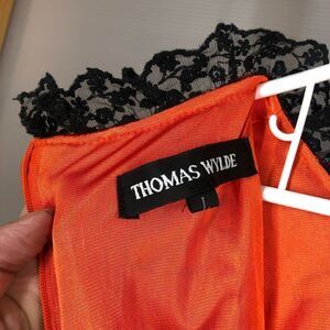 Vintage Orange White Retro Pattern Dress with Lace Velvet Front Sz L