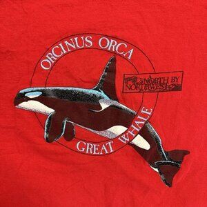 Vintage Orcinus Orca Great Whale T Shirt Size XL North By Northwest Red USA