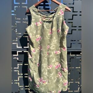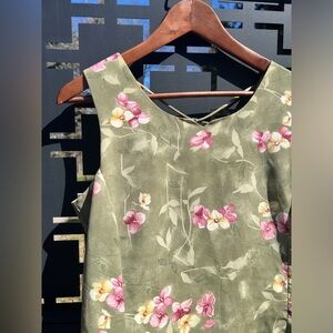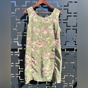 Vintage Organza Floral Green Romantic Feminine Shift Midi Dress Large