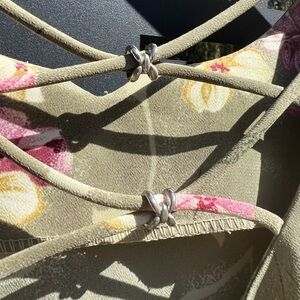 Vintage Organza Floral Green Soft Girl Fairy Garden Girl Shift Midi Dress Large