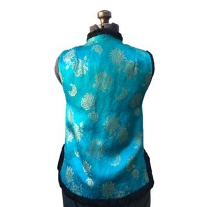 Beautiful Turqoise colour, Vintage, Asian, Oriental, Turqoise shiny, reversible vest, with faux fur on other side.