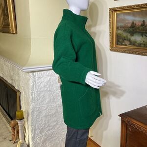 Absolutely stunning vintage coat! Original Yukon Parka in 100% green wool with handcrafted appliqué at back featuring genuine fur. This beautiful mid thigh length coat features a two way zipper, front pockets and is fully lined.