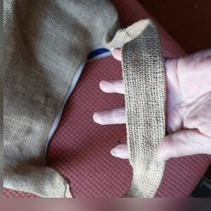 Vintage "Original by Fifie" Burlap Sack Hobo Bag. Lined. Interior zippered deep pocket. Plus double pockets on opposite side. Top zippered closure. Well made. Pre-owned. Origin unknown.
