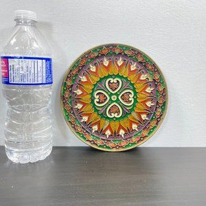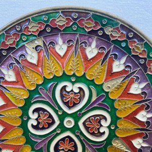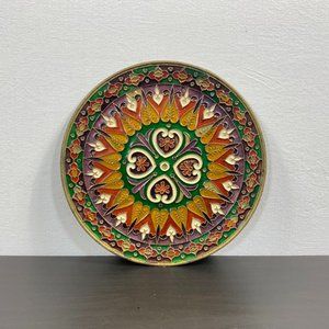 Vintage Ornate Enamel & Bronze Wall Ornament Plate, Smaltotex, Boho Chic Decor,