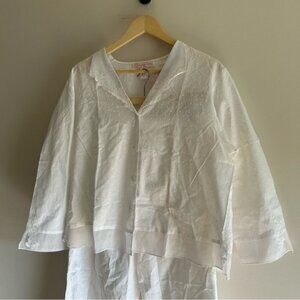 Vintage Oscar De La Renta Pink Label White Cotton Pajamas Set