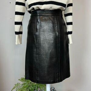 Vintage Oscar Leopold soft black leather lined pencil skirt