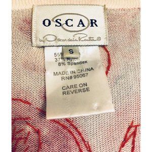 Vintage authentic Oscar de la Renta white cardigan featuring water colour roses with sequin detailing. Perfect vintage designer collectors item. Purchased vintage, never worn - in pristine condition. Size Small.