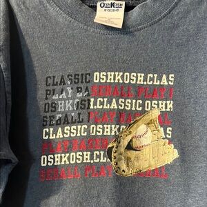 This OshKosh kids t-shirt features a stylish blue color with a playful graphic design. Perfect for everyday wear, it offers comfort and style for your little one.