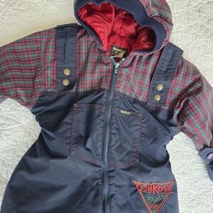 Vintage Oshkosh Toddler Snowsuit Onsie Bunting Navy Plaid 18 Months