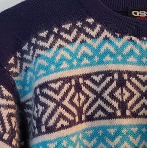 Vintage Ossi Ski Wear Fairisle Knit Sweater Acrylic and Wool Blend Size Small