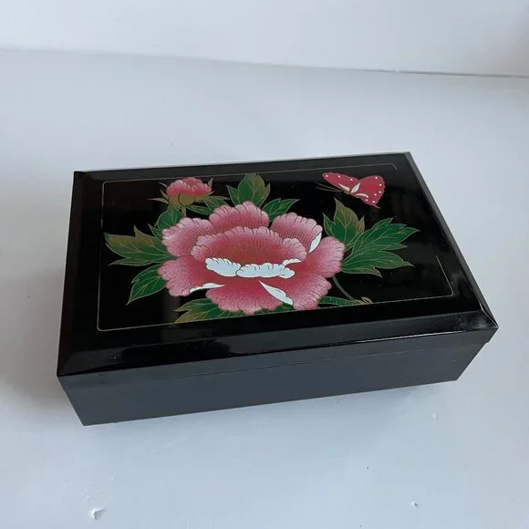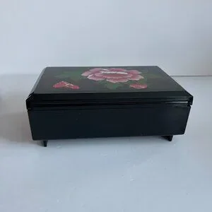Vintage Otagiri Black Lacquered Musical Jewelry Box Made in Japan
