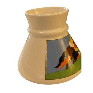 The Vintage Otagiri Japan No Spill Mug features a wide bottom design to prevent spills, making it perfect for horse racing enthusiasts. Made of ceramic and porcelain, this multicolor mug showcases a graphic design of horses, ideal for both hot and cold beverages. With an original Otagiri brand and a vintage aesthetic, this coffee mug is a unique addition to any kitchen or collectibles collection. Perfect for all occasions and suitable for both men and women, this mug is a must-have for equestrian enthusiasts.