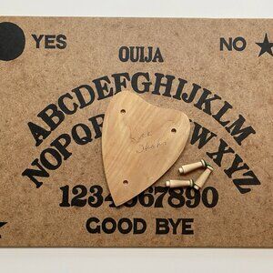 Rare Vintage 1950s Copp Clark Ouija Mystical Talking Board, in generally good condition considering its age. Comes with wooden planchette and original box. A rare find for collectors of spiritual, paranormal and vintage games.