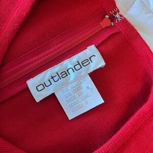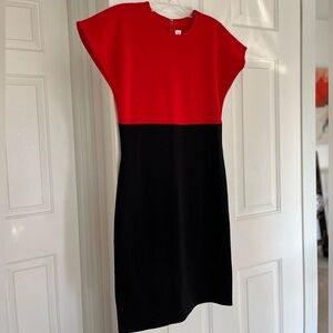 This vintage dress is by Outlander. It offers wool blend fabrication with a dolman sleeve and colour block red & black colour way. This piece transitions well from day to night. Throw in a blazer for work & add some heels for a night look.