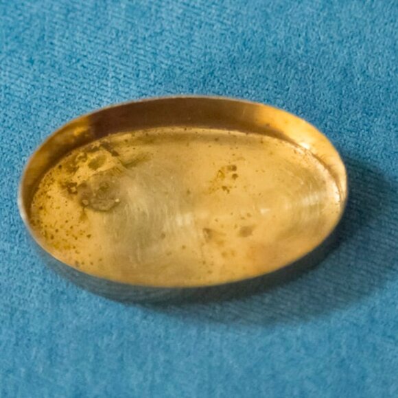 Vintage Oval Brass Pill Trinket Box with Mother of Pearl Inlay