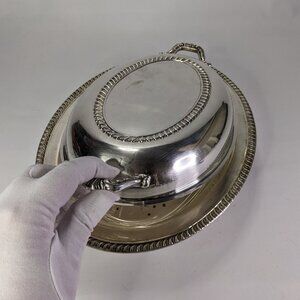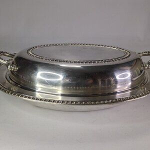 Vintage Oval Serving Dish with Lid, Silver Plated, Two Piece Vegetable Dish