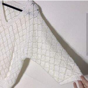 Vintage Oversized Ivory Diamond Knit V Neck Half Sleeve Sweater M