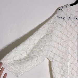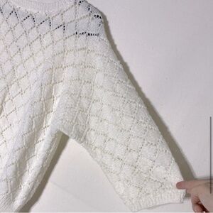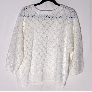 Vintage Oversized Ivory Diamond Knit V Neck Half Sleeve Sweater M