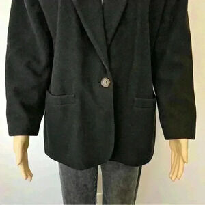 Vintage Oversized Minimalist Black Wool Blended Blazer Suite Jacket