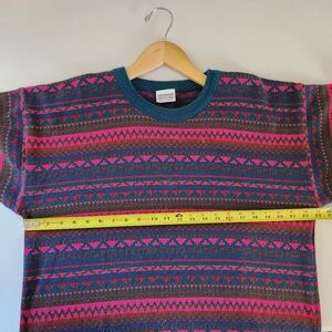 Vintage Oversized Pink Blue Fair Isle Crew Neck Sweater 90s 1990s Ski Preppy M