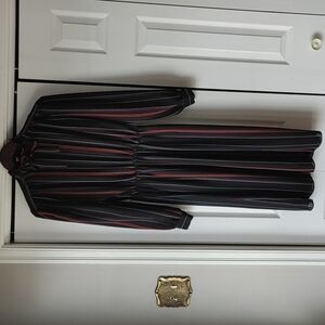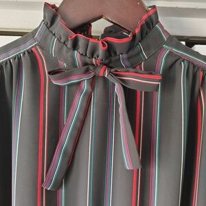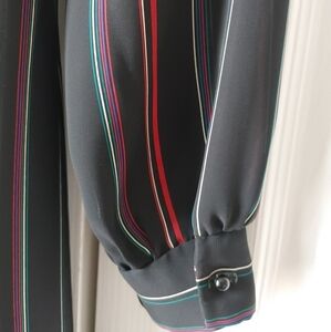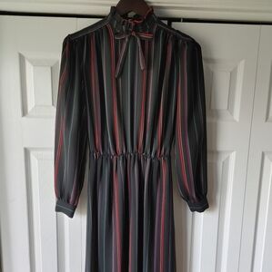 Vintage P u s s y Cat Dress By Carla Jane does not have a size or material tag but is estimated to be size small to medium. See measurements in pictures. Elasticized waist. Button sleeves and back of neck. Small shoulder pads. Polyester type material. Very good vintage condition. New to poshmark? Sign up with my code Jstewart261 to receive $15 off your first purchase. The perfect 80's secretary dress! Goth.