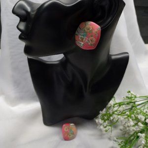 Vintage PASTEL Earrings Pink & Blue FLOWER Design For Pierced Ears - Very Dainty