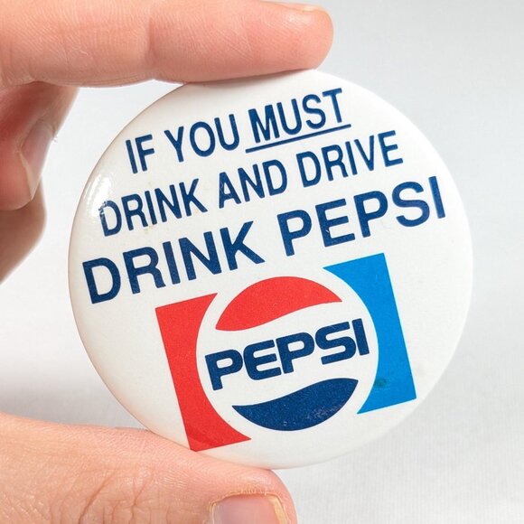 Vintage PEPSI pinback button, If you must drink and drive, drink Pepsi Apple