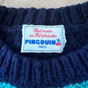 Vintage PINGOUIN Paris Handmade Fisherman's Sweater L-XL - Navy