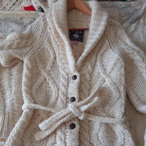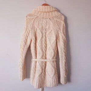 Stunning vintage VS PINK 100% Wool thick, chunky knit classic cardigan sweater featuring a v-neck and a button down front with a wrap-tie waist. Awesome large, detailed buttons. This sweater is super thick, soft and so cozy and warm.