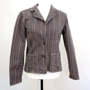 Vintage POINT ZERO Jacket Brown Grey Striped Stretch Cotton Blend Pockets Size S