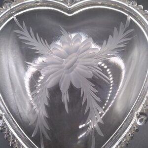Vintage Paden City Glass Covered Dish Etched Flowers Jewelry Trinket Box Jewelry