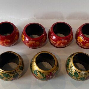 Vintage Painted wooden Holiday/ Christmas Napkin Rings. 7 Rings