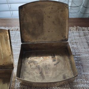 2 Elegant Brass Nesting Jewelry Trinket Case Boxes