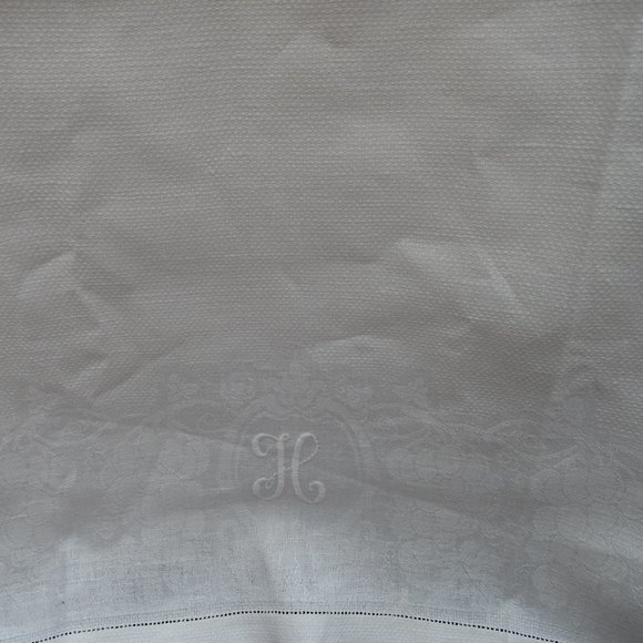 Vintage Pair Damask Irish Linen H Embroidered Towels 17" X 32"