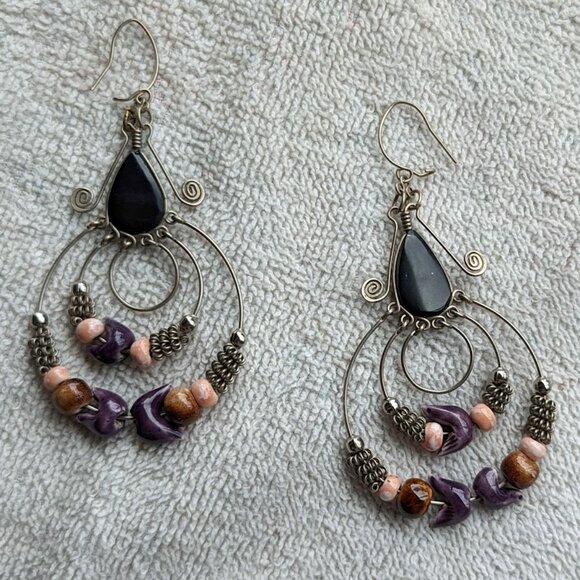 Vintage Pair of Ceramic Triple Hoop Earrings – c 1970s/1980s