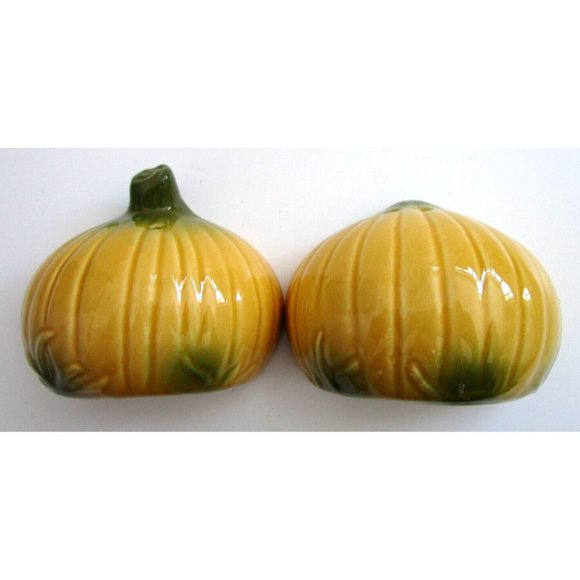 Vintage Pair of Onion Halves Salt & Pepper Shakers Ceramic Retro Country Kitchen