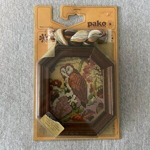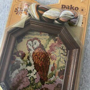 Vintage Pako Owl Mini 5" x 6" Embroidery Kit Wooden Frame