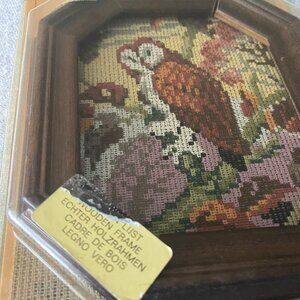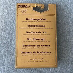 Beautiful embroidery kit that I never ended up using! New in the package, but please note that the embroidery kit is vintage so there are quite a few flaws on the packaging and the frame seems to be coming apart a bit on one corner (please refer to photos!). I also had to repackage it as the plastic casing is tearing a bit, but the actual kit has never been used.