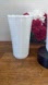 This lovely pair of vintage paneled milk glass vases features a tall, flared shape with vertical panels and scalloped rims. The bright opaque white glass and clean lines give these pieces a timeless mid-century look that pairs beautifully with any décor style.
